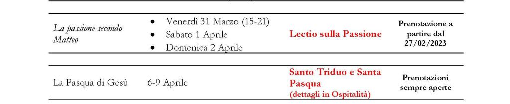 Crediamo che questa lectio ci aiuti ad entrare nella celebrazione della Grande Settimana con il cuore riscaldato dall’amore crocefisso del Figlio di Dio che «non ha ritenuto un tesoro geloso la sua uguaglianza con Dio ma spogliò se stesso assumendo la forma dello schiavo facendosi obbediente fino alla morte e alla morte di croce» (cf. Fil 2,6-8).