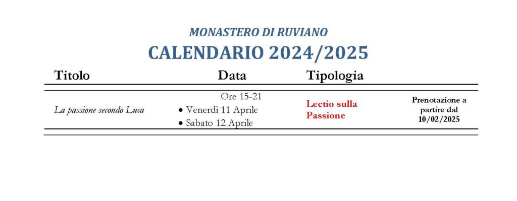 Crediamo che questa lectio ci aiuti ad entrare nella celebrazione della Grande Settimana con il cuore riscaldato dall’amore crocefisso del Figlio di Dio che «non ha ritenuto un tesoro geloso la sua uguaglianza con Dio ma spogliò se stesso assumendo la forma dello schiavo facendosi obbediente fino alla morte e alla morte di croce» (cf. Fil 2,6-8).