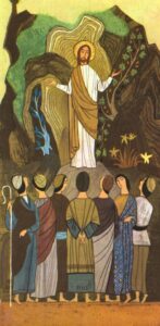 Con il passo di oggi del Vangelo di Matteo si entra a pieno titolo nella predicazione di Gesù: si tratta del primo grande discorso, il discorso della Montagna. Domenica scorsa avevamo ascoltato sulle labbra di Gesù la stessa parola del Precursore sull’urgenza della conversione a motivo dell’avvicinarsi del Regno dei cieli. Il narratore ci aveva detto che Gesù, dopo aver chiamato quattro discepoli, girava per la Galilea, insegnava nelle sinagoghe e curava tutte le malattie di coloro che venivano portati da Lui; molte folle lo seguivano da tutta la terra di Israele. Ed è per questa folla che, all’inizio del nostro brano di oggi, Egli sale sul monte dal quale tiene il primo discorso, la prima predicazione, che evidentemente ha grande importanza. Egli si siede e i discepoli si avvicinano; sedendosi vuole indicare che è il maestro e che parla con autorità di cose che conosce, di cose nelle quali è esperto. Ponendosi così chiede di essere ascoltato con fiducia, con le orecchie attente di chi sa che di fronte a sé ha qualcuno di più grande di lui, qualcuno dal quale c’è da imparare.