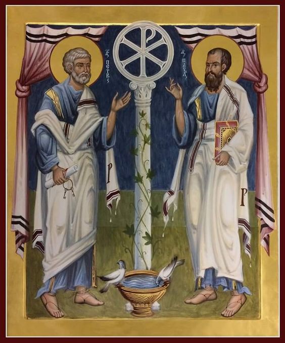 I due Santi Apostoli, con le loro vite e le loro lotte, ci raccontano il proprium della vita della Chiesa, ci mostrano le vie che bisogna percorrere con loro per seguire quel Gesù che un giorno afferrò la loro vita (cf Fil 3,12) sulle rive del lago di Genesareth, sulla via di Damasco…da quegli incontri iniziò la loro lotta per appartenergli per sempre e per gridare al mondo la potenza salvifica della Croce e della Risurrezione di Gesù.