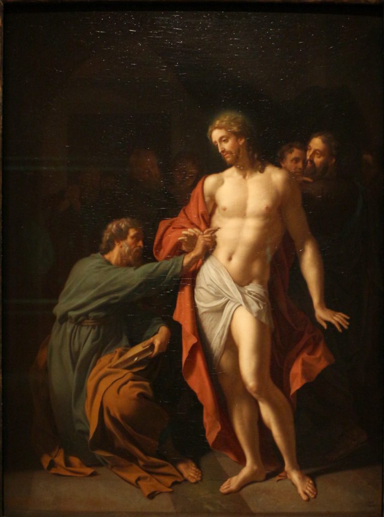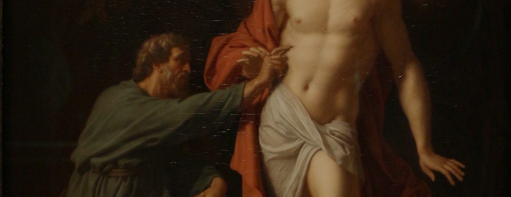I dieci cercano, con insistenza, di farlo uscire dal suo buio autosufficiente e incapace di credere, senza vedere, sulla parola della comunità ecclesiale. Gesù lo va a cercare proprio lì, nella sua pretesa di toccare e vedere, nella sua durezza di cuore, vincendo quella pretesa e quella durezza con la sua condiscendenza: «Metti qui il tuo dito… tendi la tua mano e mettila nel mio fianco; e non essere incredulo, ma credente!».
