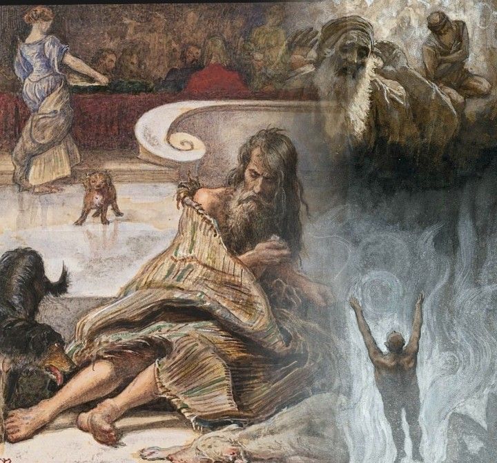 I due, infatti, restano in una situazione di disparità, ma capovolta: Lazzaro è portato dagli angeli nel seno di Abramo, il ricco è sepolto e sta nell’inferno (la differenza dei due verbi è importante e mostra già il capovolgimento delle situazioni).